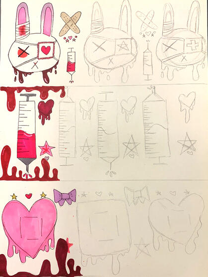 For this project, I picked the theme of doing menhera and yamikawaii style mixed with Lolita fashion. My initial plan was to print a skirt, but I didn't get enough chance to do that past making a first pass.