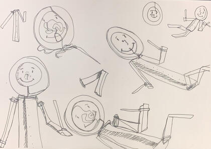 A fake sketchbook page of field sketches done based on a scientist character in an anime I atched recently. I wanted to make something that felt like it was bringing the character to life.