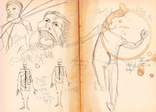 These sketches were from a project I did at college- they demonstrate my way of getting to my final outcome and the layers I ended up using to create parts of the illlustration.