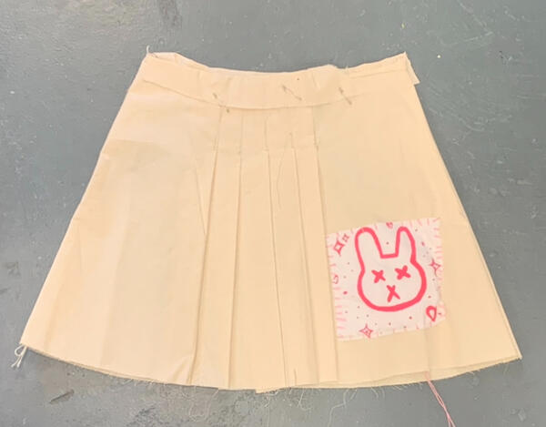 First pass of the skirt. I started to add placing for where the pattern was going to go by using patches so I wouldn't be wasting ink and so I got a chance to try out silk screen printing to make them.