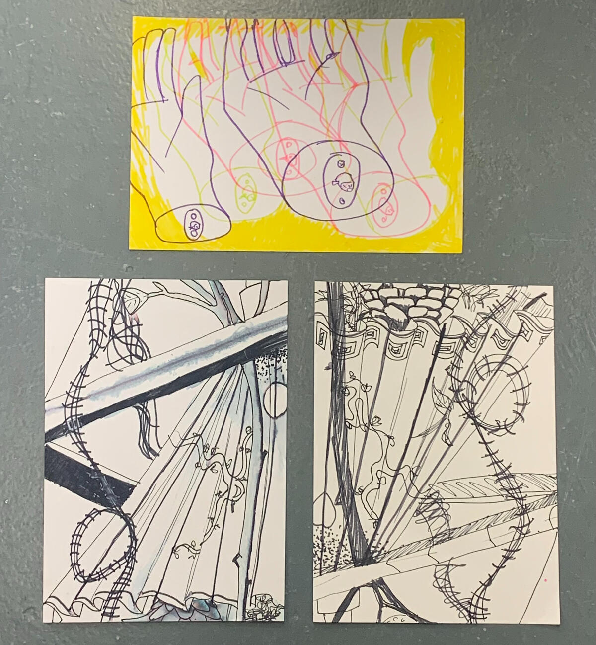 These sketches were from a project I did at college- they demonstrate my way of getting to my final outcome and the layers I ended up using to create parts of the illlustration.
